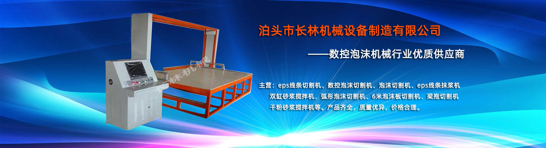 泊頭市長(zhǎng)林機(jī)(jī)械設(shè)(shè)備制造有限公司座落于河北省泊頭市開發(fā)(fā)區(qū)(qū),地處北京、天津、濟(jì)(jì)南、石家莊中心位置。京滬高速、京滬鐵路、106國道、104國道穿行于本市,交通便利。 本公司是集多功能數(shù)(shù)控泡沫切割機(jī)(jī)的自主研發(fā)(fā)、生產(chǎn)(chǎn)、銷售和服務(wù)(wù)于一體的企業(yè)(yè),eps線條設(shè)(shè)備,數(shù)(shù)控泡沫切割機(jī)(jī),發(fā)(fā)泡陶瓷切割機(jī)(jī),eps線條切割機(jī)(jī)銷往全國各地,并開辟了國際合作的廣闊渠道。創(chuàng)(chuàng)新不斷的長(zhǎng)林?jǐn)?shù)控機(jī)(jī)械有限公司經(jīng)(jīng)過幾年的不斷研究,完善了建筑裝飾構(gòu)(gòu)件的配套設(shè)(shè)備和自動(dòng)(dòng)化設(shè)(shè)備,由過去手工生產(chǎn)(chǎn)到半自動(dòng)(dòng)生產(chǎn)(chǎn)發(fā)(fā)展到現(xiàn)(xiàn)在的CNC控制的全自動(dòng)(dòng)零誤差數(shù)(shù)控泡沫切割機(jī)(jī)床。不但讓客戶在交貨期上面爭(zhēng)取了時(shí)(shí)間而且···